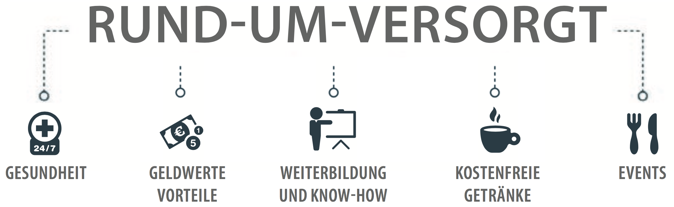 - Betriebliche Altersvorsorge mit 20 % Arbeitgeberzuschuss (höher als der gesetzliche Pflichtzuschuss)
